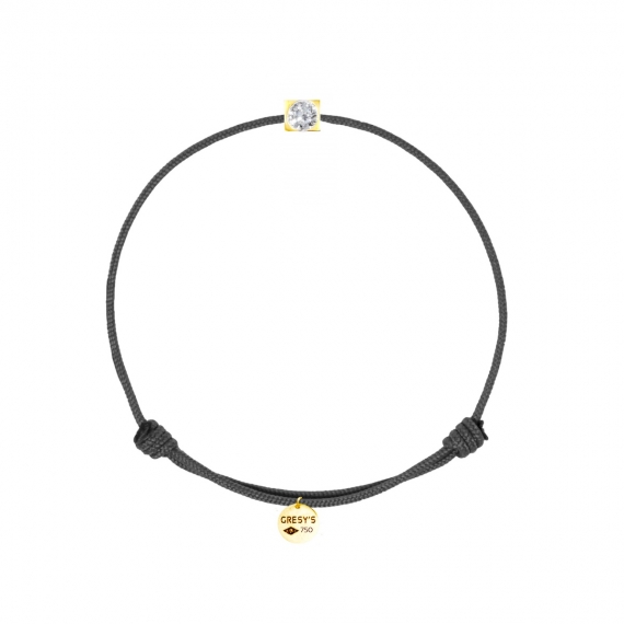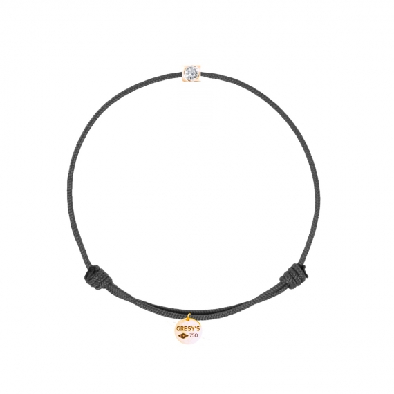 Bracelet taille femme, logo et sertissure en or 750/1000 blanc rhodié, diamant 0.02ct (diamètre 1,7mm) de qualité H/SI1. Cordon ajustable par noeuds coulissants. Livré dans un sac cadeau, une pochette en velours gravée de la marque et son certificat d’authenticité par colissimo recommandé sous 48...