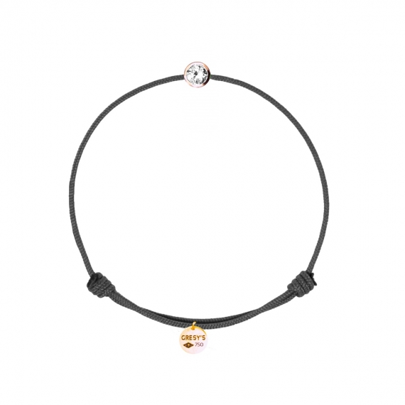 Bracelet taille femme, logo et motif en or rose 750/1000, diamant 0.05ct (diamètre 2.5mm) de qualité H/SI1. Cordon ajustable par noeuds coulissants. Livré dans une pochette en velours gravée de la marque et son certificat d’authenticité par colissimo recommandé sous 48 à 72H.