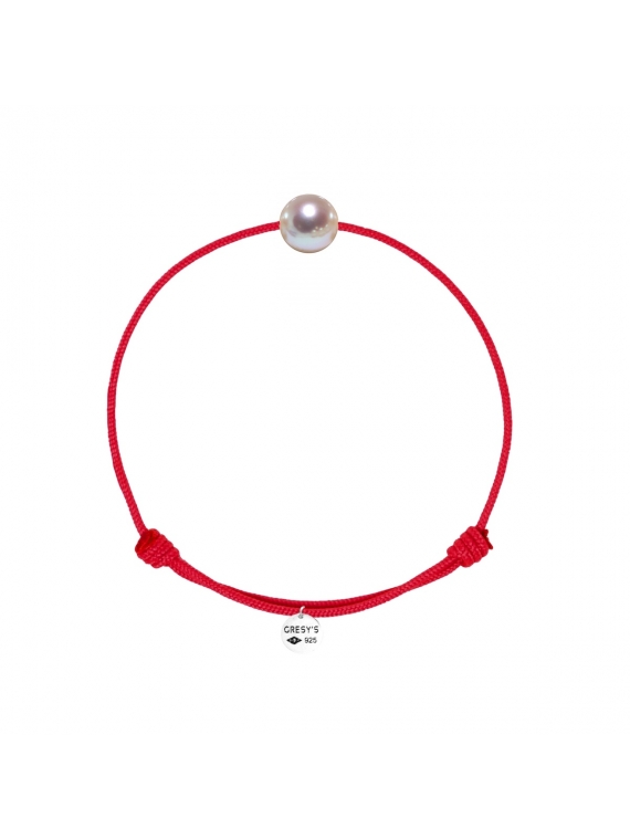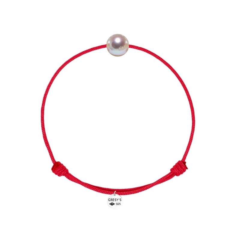 Bracelet taille femme, perle d'Akoya 8,5 / 9.00 mm qualité AAA, cordon polyester ajustable par noeuds coulissants, logo de la marque en argent 925/1000 rhodié. Livré avec un lien de rechange noir offert, dans un pochon en velours gravé de marque et son certificat d'authenticité par colissimo recommandé sous 48 à 72h.