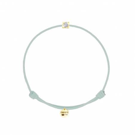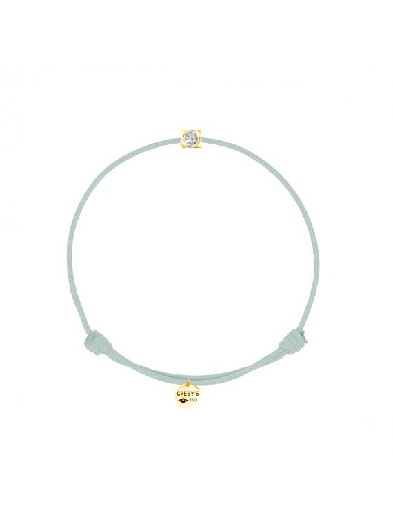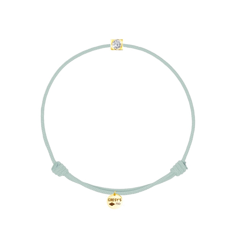 Bracelet taille femme, logo et sertissure en or jaune 750/1000, diamant 0.03ct (diamètre 2,00mm) de qualité H/SI1. Cordon ajustable par noeuds coulissants. Livré dans un sac cadeau, une pochette en velours gravée de la marque et son certificat d’authenticité par colissimo recommandé sous 48 à 72H.