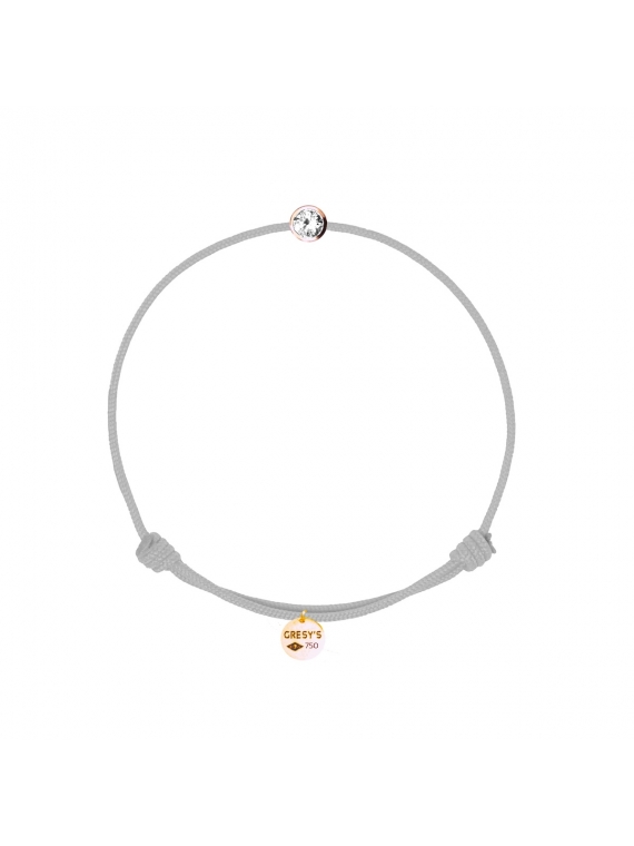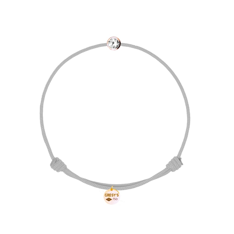 Bracelet taille femme, logo et motif en or jaune 750/1000, diamant 0.03ct (diamètre 2.00mm) de qualité H/SI1. Cordon ajustable par noeuds coulissants. Livré dans une pochette en velours gravée de la marque et son certificat d’authenticité par colissimo recommandé sous 48 à 72H.