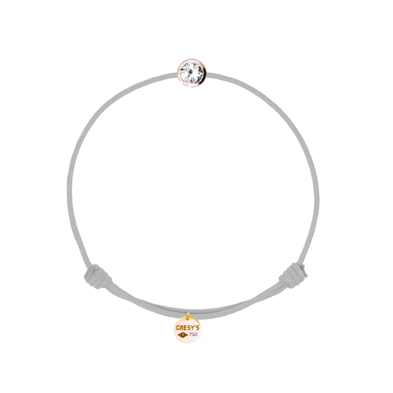 Bracelet taille femme, logo et motif en or rose 750/1000, diamant 0.10ct (diamètre 3.00mm) de qualité H/SI1. Cordon ajustable par noeuds coulissants. Livré dans une pochette en velours gravée de la marque et son certificat d’authenticité par colissimo recommandé sous 48 à 72H.