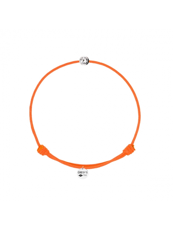 Bracelet taille femme, logo et motif en or blanc 750/1000 rhodié, diamant 0.03ct (diamètre 2.00mm) de qualité H/SI1. Cordon ajustable par noeuds coulissants. Livré dans une pochette en velours gravée de la marque et son certificat d’authenticité par colissimo recommandé sous 48 à 72H.