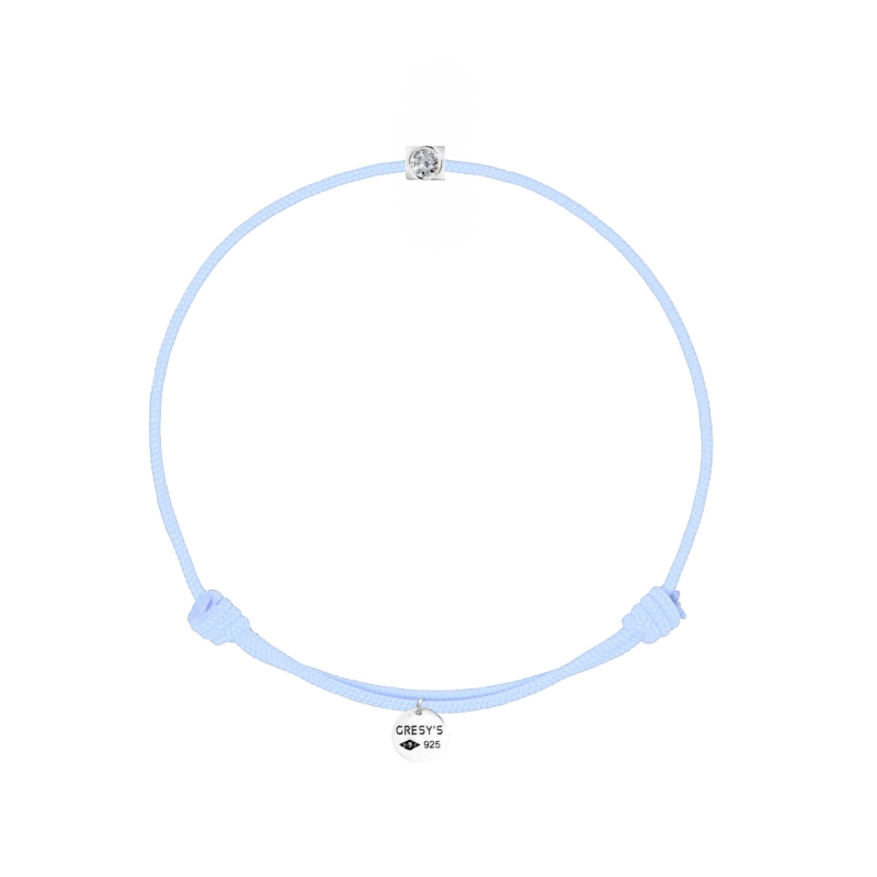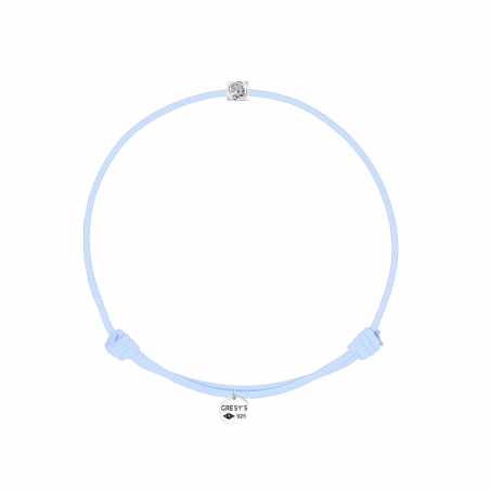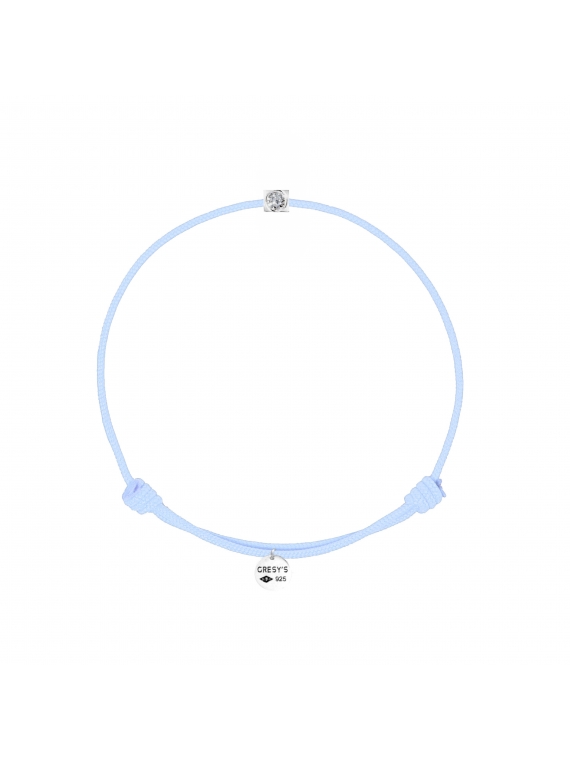 Bracelet taille enfant, logo et sertissure en argent 925/1000 rhodié, diamant 0.02ct (diamètre 1,7mm) de qualité H/SI1. Cordon ajustable par noeuds coulissants. Livré dans un sac cadeau, une pochette en velours gravée de la marque et son certificat d’authenticité par colissimo recommandé sous 48 à 72H.