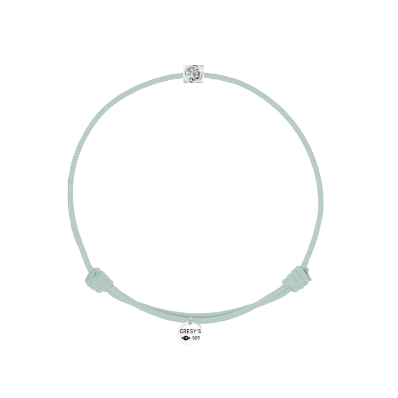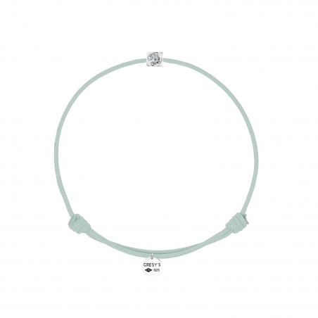 Bracelet taille enfant, logo et sertissure en argent 925/1000 rhodié, diamant 0.03ct (diamètre 2mm) de qualité H/SI1. Cordon ajustable par noeuds coulissants. Livré dans un sac cadeau, une pochette en velours gravée de la marque et son certificat d’authenticité par colissimo recommandé sous 48 à 72H.