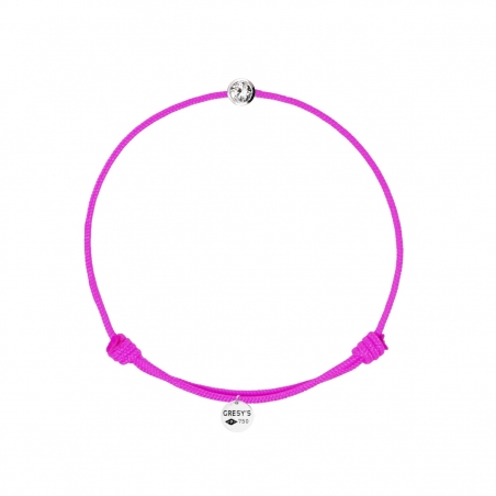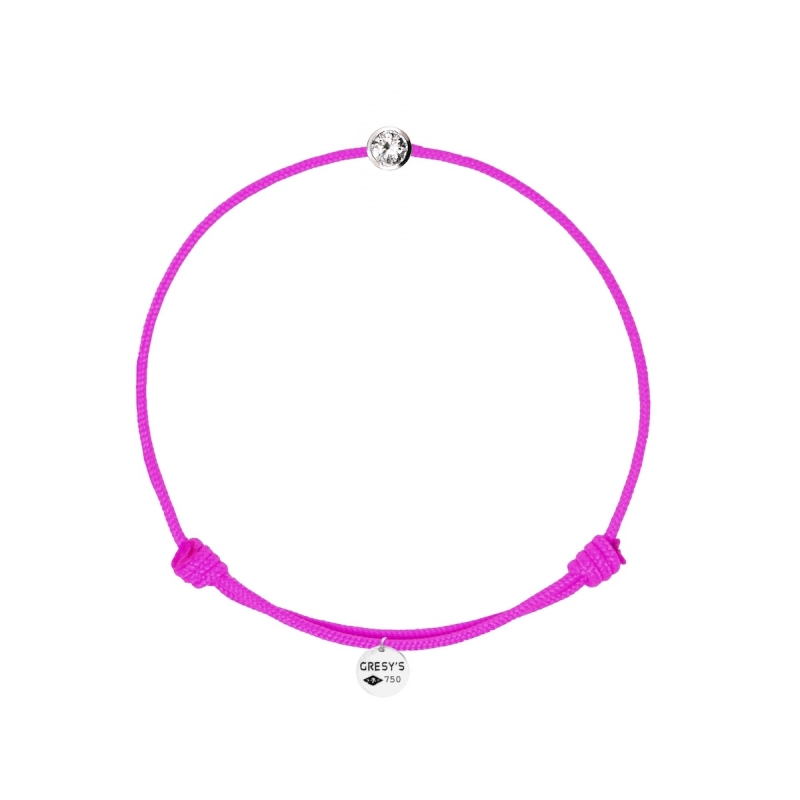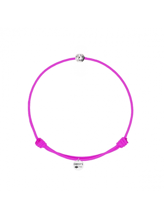 Bracelet taille femme, logo et motif en or blanc 750/1000 rhodié, diamant 0.03ct (diamètre 2.00mm) de qualité H/SI1. Cordon ajustable par noeuds coulissants. Livré dans une pochette en velours gravée de la marque et son certificat d’authenticité par colissimo recommandé sous 48 à 72H.