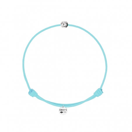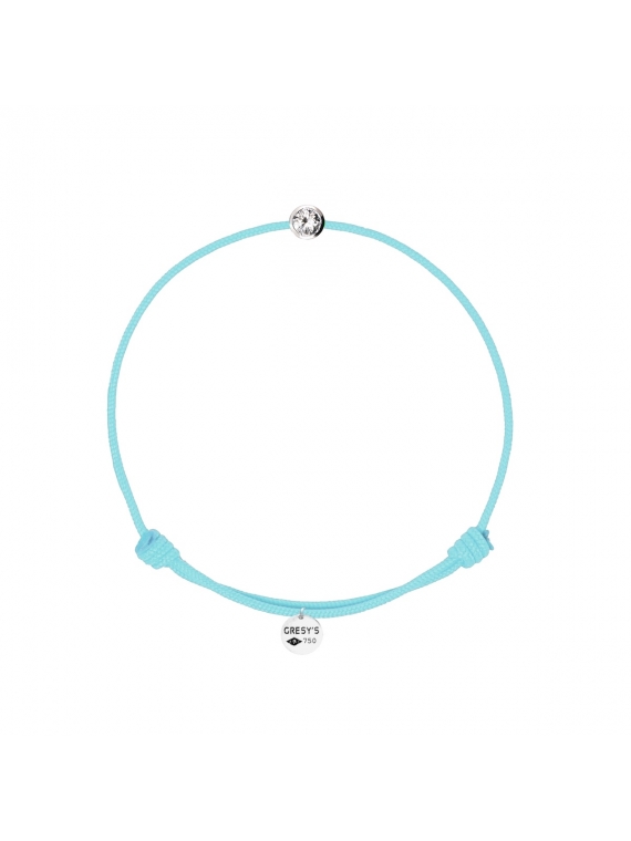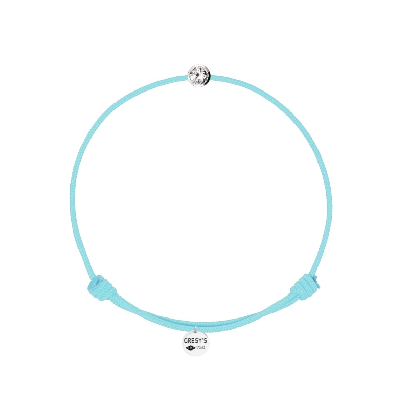Bracelet taille femme, logo et motif en or blanc 750/1000 rhodié, diamant 0.03ct (diamètre 2.00mm) de qualité H/SI1. Cordon ajustable par noeuds coulissants. Livré dans une pochette en velours gravée de la marque et son certificat d’authenticité par colissimo recommandé sous 48 à 72H.