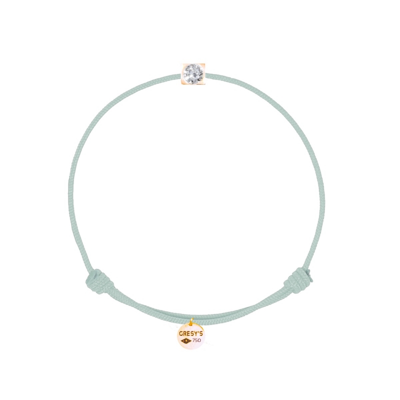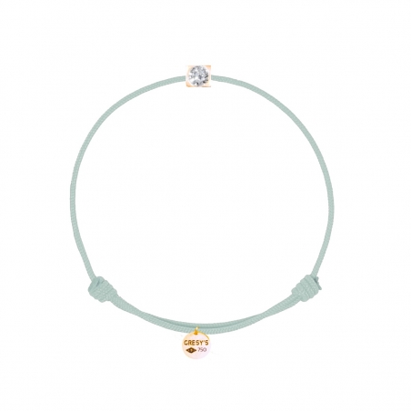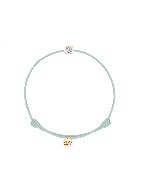 Bracelet taille enfant, logo et sertissure en or rose 750/1000, diamant 0.10ct (diamètre 3,00mm) de qualité H/SI1. Cordon ajustable par noeuds coulissants. Livré dans un sac cadeau, une pochette en velours gravée de la marque et son certificat d’authenticité par colissimo recommandé sous 48 à 72H.
