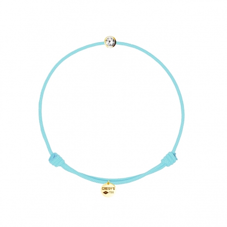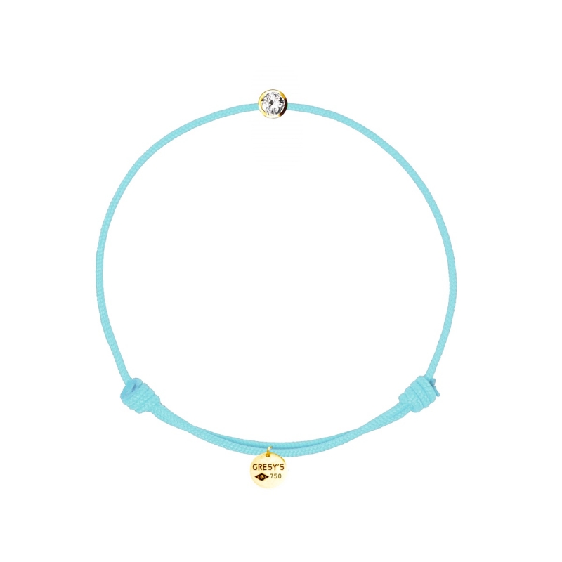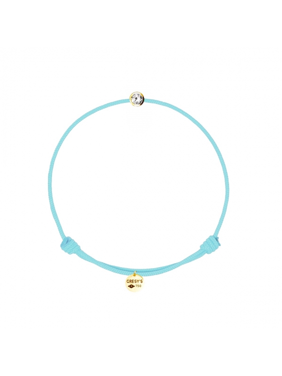 Bracelet taille enfant, logo et motif en or jaune 750/1000, diamant 0.02ct (diamètre 1.7mm) de qualité H/SI1. Cordon ajustable par noeuds coulissants. Livré dans une pochette en velours gravée de la marque et son certificat d’authenticité par colissimo recommandé sous 48 à 72H.