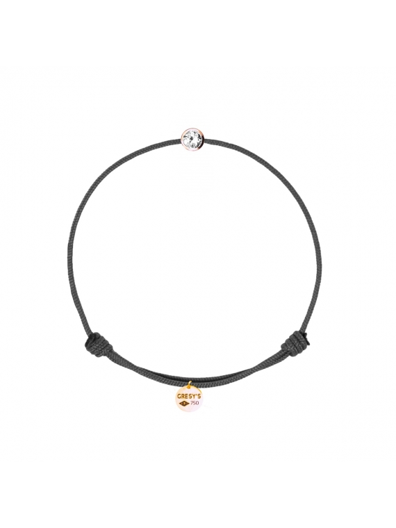 Bracelet taille enfant, logo et motif en or jaune 750/1000, diamant 0.03ct (diamètre 2.00mm) de qualité H/SI1. Cordon ajustable par noeuds coulissants. Livré dans une pochette en velours gravée de la marque et son certificat d’authenticité par colissimo recommandé sous 48 à 72H.