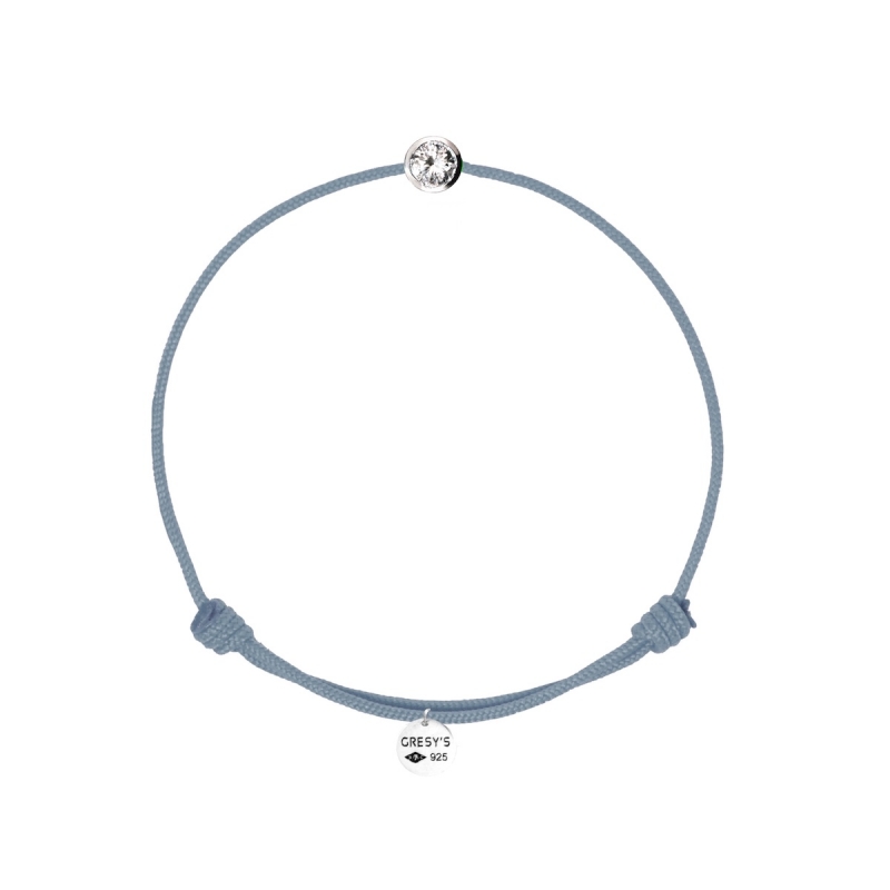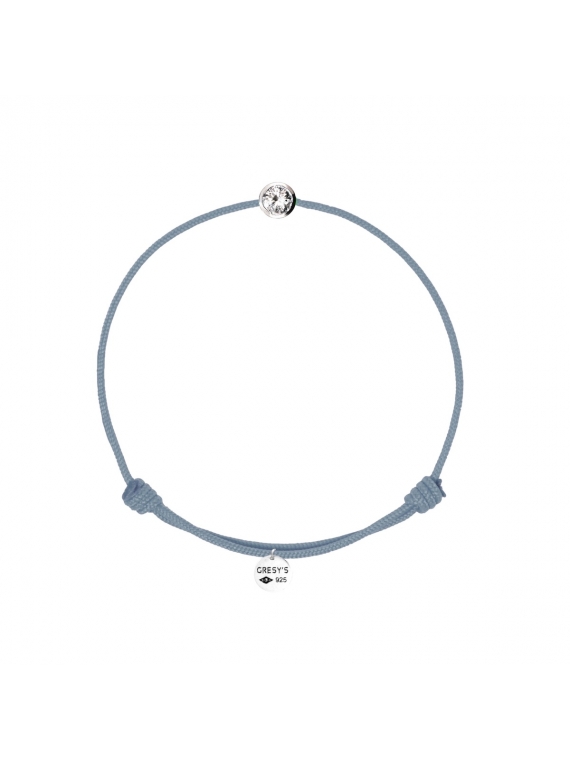 Bracelet taille enfant, logo et sertissure en argent 925/1000 rhodié, diamant 0.05ct (diamètre 2,5mm) de qualité H/SI1. Cordon ajustable par noeuds coulissants. Livré dans un sac cadeau, une pochette en velours gravée de la marque et son certificat d’authenticité par colissimo recommandé sous 48 à 72H.