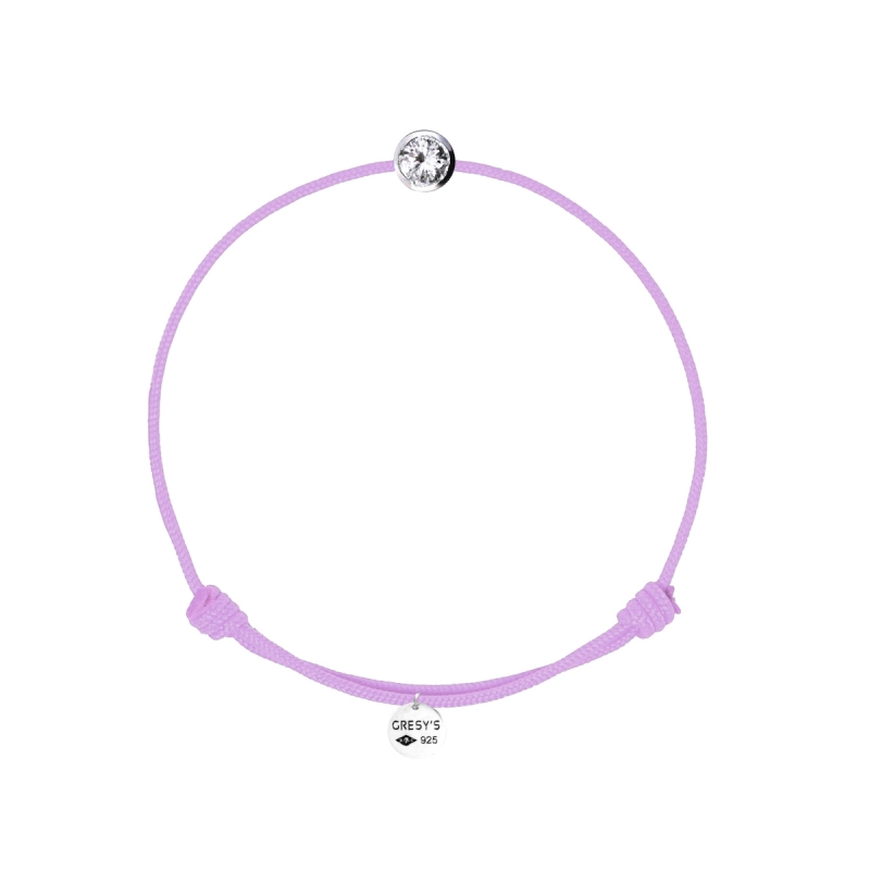 Bracelet taille enfant, logo et sertissure en argent 925/1000 rhodié, diamant 0.10ct (diamètre 3mm) de qualité H/SI1. Cordon ajustable par noeuds coulissants. Livré dans un sac cadeau, une pochette en velours gravée de la marque et son certificat d’authenticité par colissimo recommandé sous 48 à 72H.