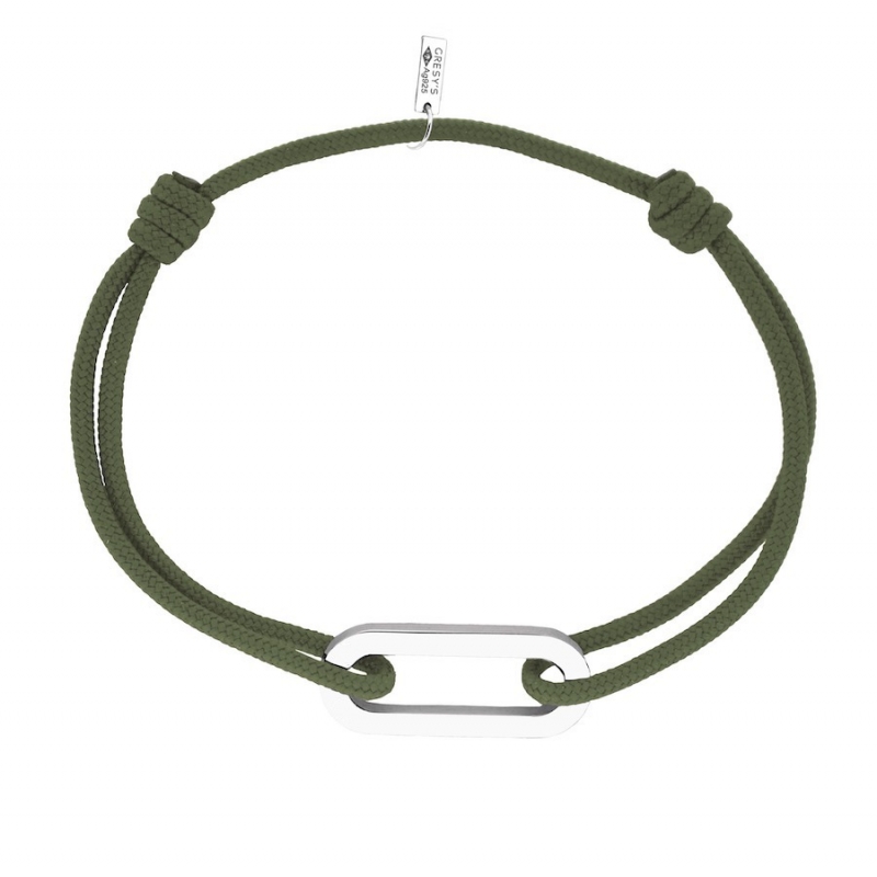 Bracelet taile femme sur cordon, logo et motif en argent 925/1000 rhodié. Cordon ajustable par noeuds coulissants. Livré dans une pochette en velours gravée de la marque et son certificat d’authenticité par colissimo recommandé sous 48 à 72H.