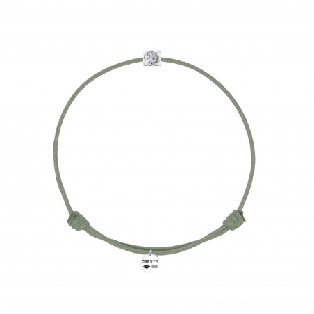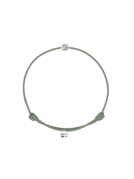 Bracelet taille femme, logo et sertissure en argent 925/1000 rhodié, diamant 0.10ct (diamètre 3.00mm) de qualité H/SI1. Cordon ajustable par noeuds coulissants. Livré dans un sac cadeau, une pochette en velours gravée de la marque et son certificat d’authenticité par colissimo recommandé sous 48 à 72H.