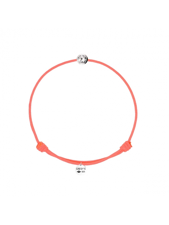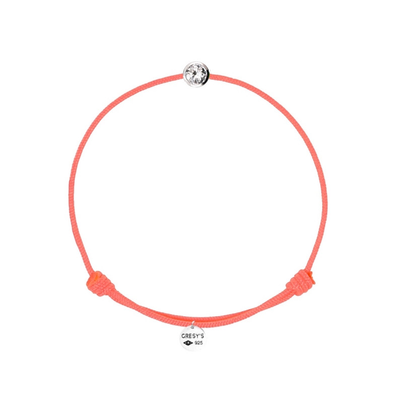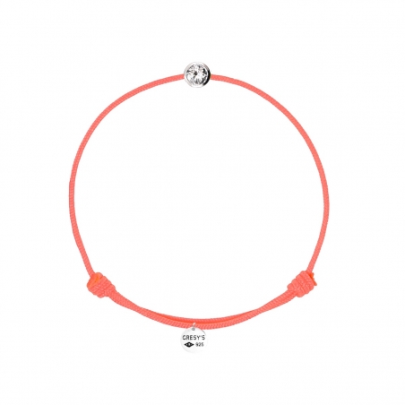 Bracelet taille femme, logo et sertissure en argent 925/1000 rhodié, diamant 0.05ct (diamètre 2,5mm) de qualité H/SI1. Cordon ajustable par noeuds coulissants. Livré dans un sac cadeau, une pochette en velours gravée de la marque et son certificat d’authenticité par colissimo recommandé sous 48 à 72H.