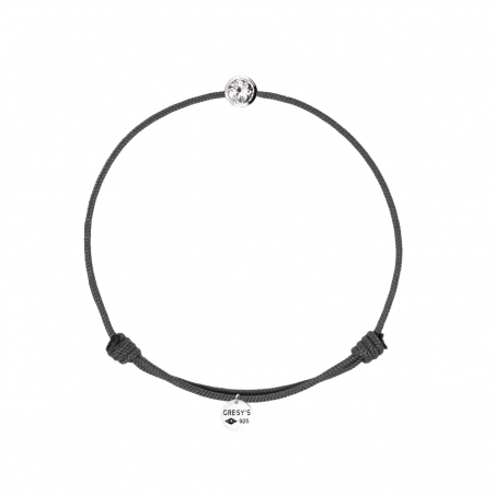 Bracelet taille femme, logo et sertissure en argent 925/1000 rhodié, diamant 0.05ct (diamètre 2,5mm) de qualité H/SI1. Cordon ajustable par noeuds coulissants. Livré dans un sac cadeau, une pochette en velours gravée de la marque et son certificat d’authenticité par colissimo recommandé sous 48 à 72H.