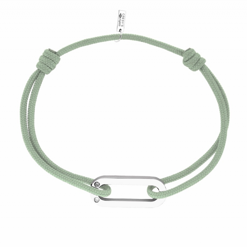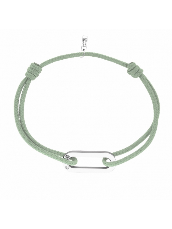 Bracelet sur cordon, logo et motif en argent 925/1000 rhodié, serti de deux diamant de qualité H/SI1 de 0.01ct chacun . Cordon ajustable par noeuds coulissants. Livré dans une pochette en velours gravée de la marque et son certificat d’authenticité par colissimo recommandé sous 48 à 72H.