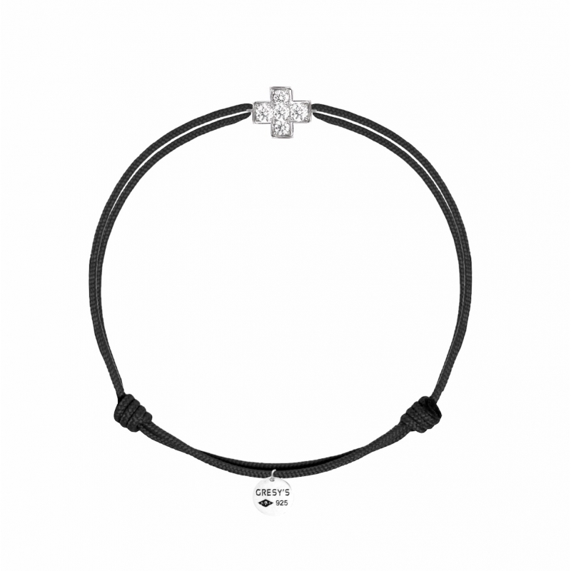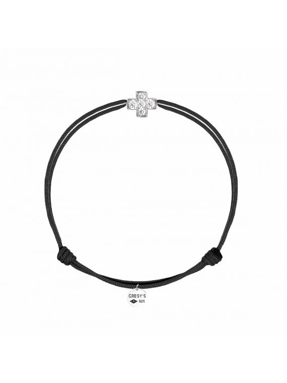 Bracelet taille homme, motif et logo en argent 925/1000 rhodié, 5 diamants de 0.01ct pour un poids total de 0.05ct de qualité G/VS. Cordon ajustable par noeuds coulissants. Livré dans un sac cadeau, une pochette en velours gravée de la marque et son certificat d’authenticité par colissimo recommandé sous 48 à 72H.
